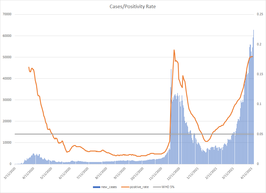 The situation in India is but one example, but it is horrifying given their population density and global impact. Everyone should be very alarmed that they have gone from about 25,000 cases/day to almost 250,000 cases/day in just over a month.